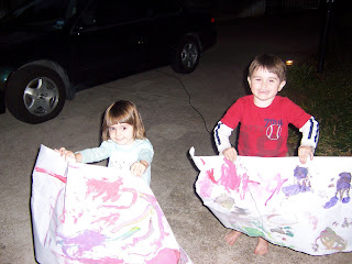 Will and Caroline decided to make self-portraits. Too bad they also decided to paint Daddy's truck. Hopefully, the paint will come off. Here they are with their masterpieces.